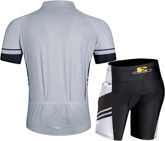 Men'S Cycling Jersey Set, Quick-Dry Bike Jersey Suits Bicycle Short Outfits Cycling Clothing Kit - 3D Padded Shorts Black Gray Xx-Large
