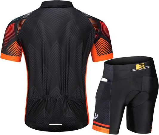 Men'S Cycling Jersey Set, Quick-Dry Bike Jersey Suits Bicycle Short Outfits Cycling Clothing Kit - 3D Padded Shorts Black Orange Small