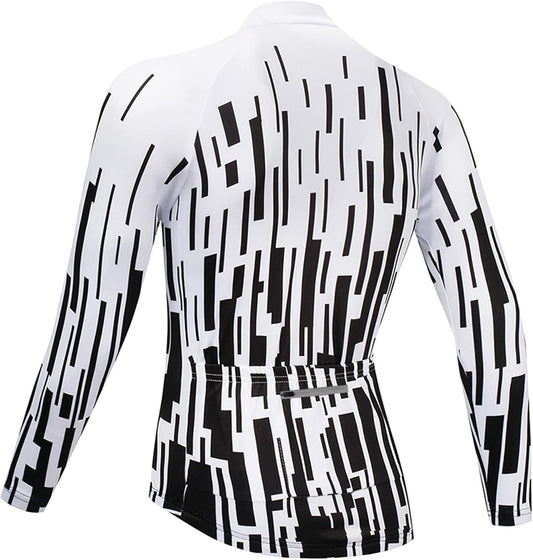 CR Long Sleeve Cycling Jersey Mens, 3+1 Zipper Pockets Bicycle Tops Quick Dry Breathable Biking Shirt