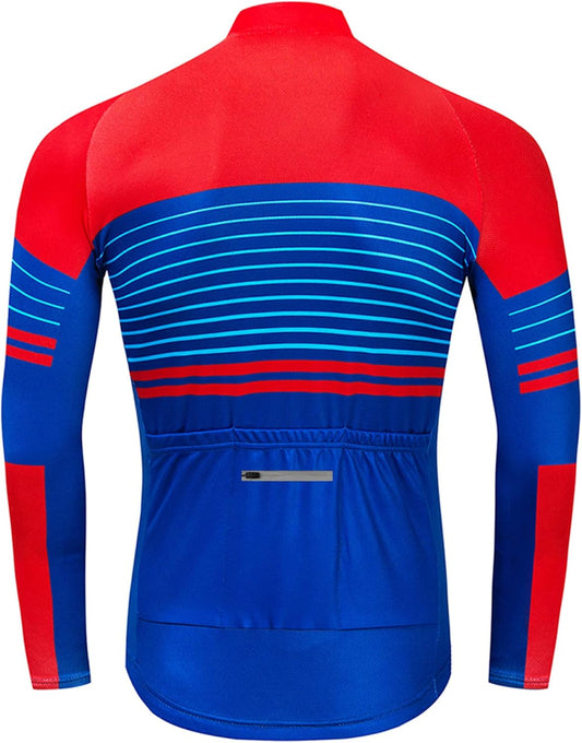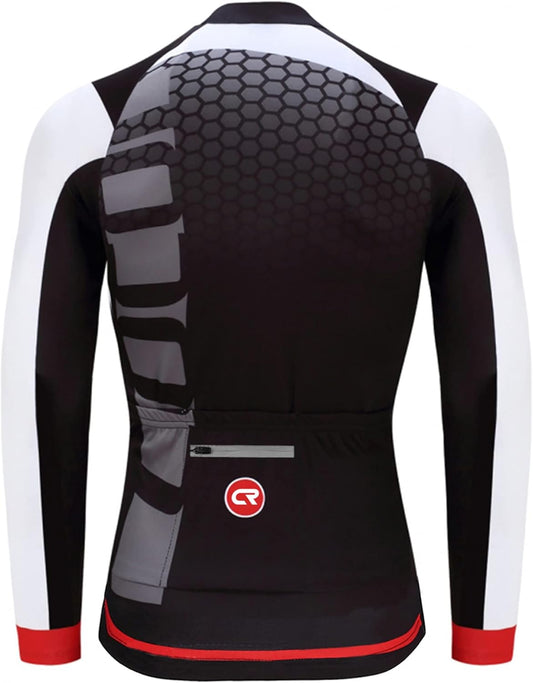 CR Long Sleeve Cycling Jersey Mens, 3+1 Zipper Pockets Bicycle Tops Quick Dry Breathable Biking Shirt