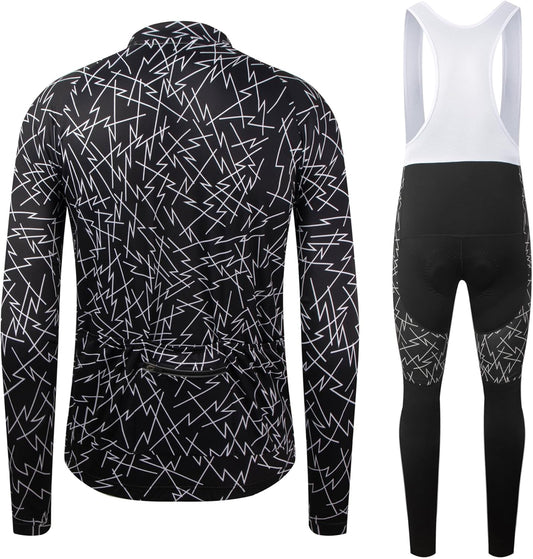 CR Men'S Cycling Clothing Set Long Sleeve Cycling Jersey Zipper Pocket Bike Outfit Cycling Bib Pants 3D Padded