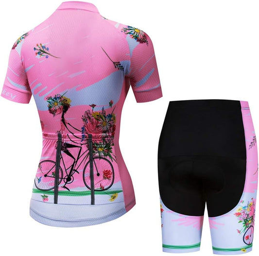 Womens Cycling Jersey Sets Sports Breathable Padded Cycling Clothing Cycling Wear Summer Girl Pink M